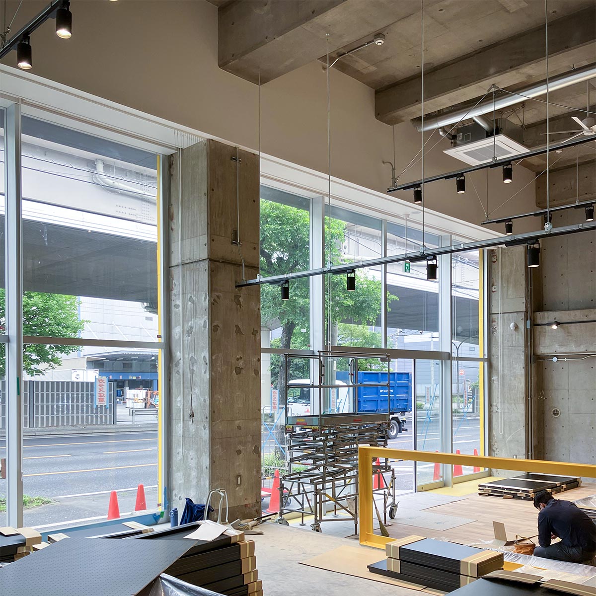 コンクリートスラブや天井などの既存仕上は部分的にそのまま残してコストに配慮しつつ、店舗のブランドイメージに基づくカラースキームを用いて、無骨でありながら整った空間を志向した。